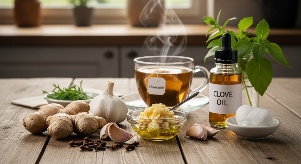 Clove oil contains eugenol, a natural compound known for its pain-relieving properties. This oil has been used in dentistry for years as a natural remedy for tooth pain.